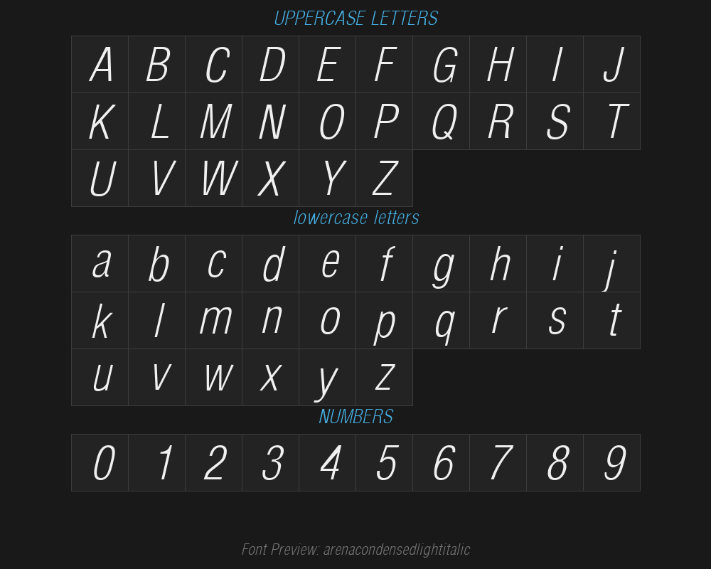 http://enfont.ssh5.cn/font/arenacondensedlightitalicttf.html