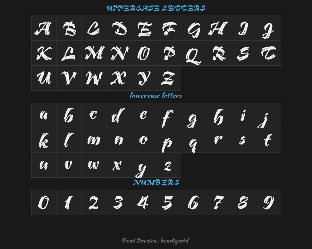 bendigostd is a font file with a size of 0.05 MB. The full font name is BendigoStd, Version 1.000;PS 1.0;hotconv 1.0.38 version. It contains 254 characters, supports 8 Chinese characters. The copyright belongs to Bendigo Std. bendigostd font is available for free download, but commercial use requires confirmation on the Bendigo Std official website whether it's free for commercial use.