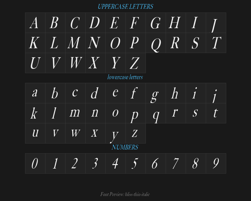 bliss-thin-italicFont details