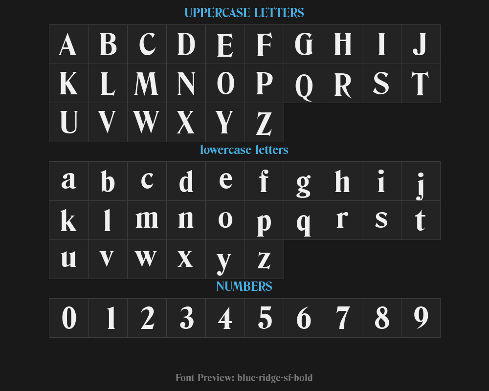 | AboutFont | FontMonger Blue Ridge SF Bold |
