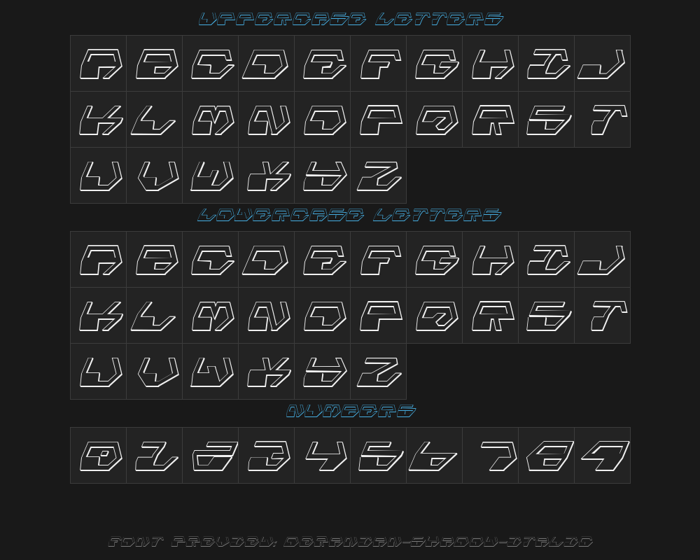 deranian-shadow-italic is a font file with a size of 0.06 MB. The full font name is Deranian Shadow Italic, 001.000 version. It contains 208 characters, supports 8 Chinese characters. The copyright belongs to Deranian Shadow Italic. deranian-shadow-italic font is available for free download, but commercial use requires confirmation on the Deranian Shadow Italic official website whether it's free for commercial use.