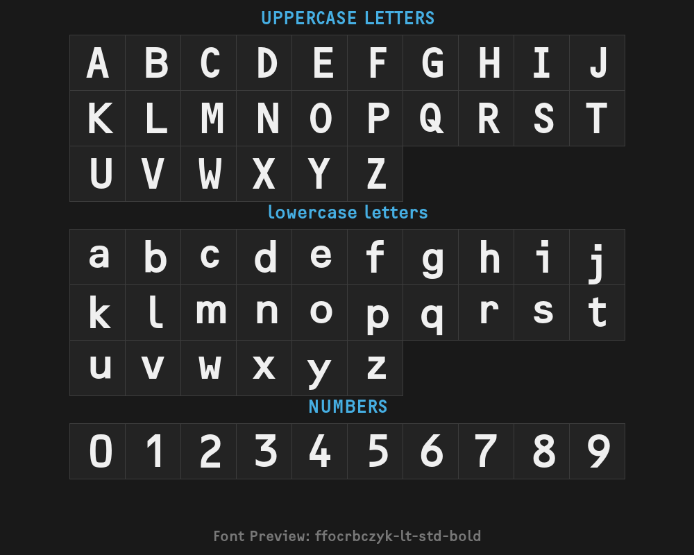 | PostScript name | F2FOCRBczykLTStd-Bold |