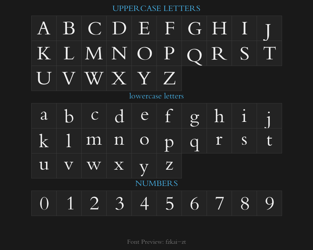 | Copyright notes | Fangzheng Regular Script Traditional Chinese |