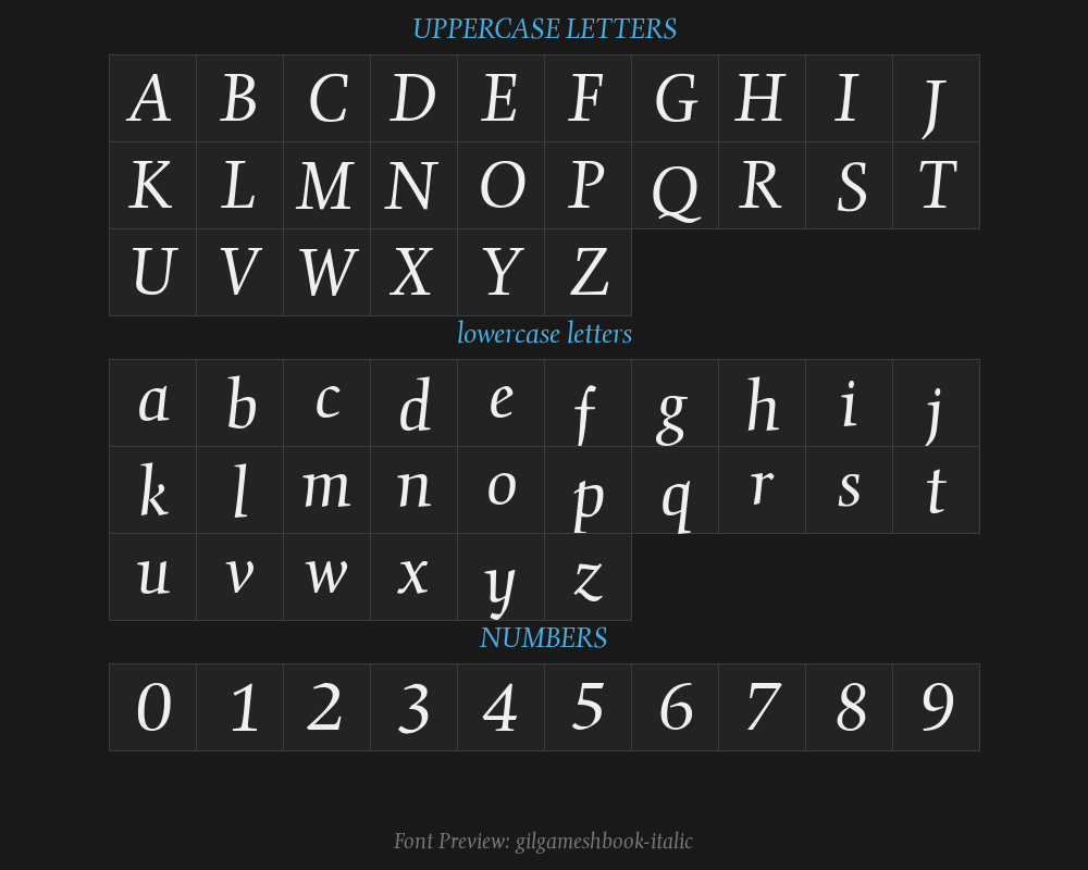 gilgameshbook-italicFont details