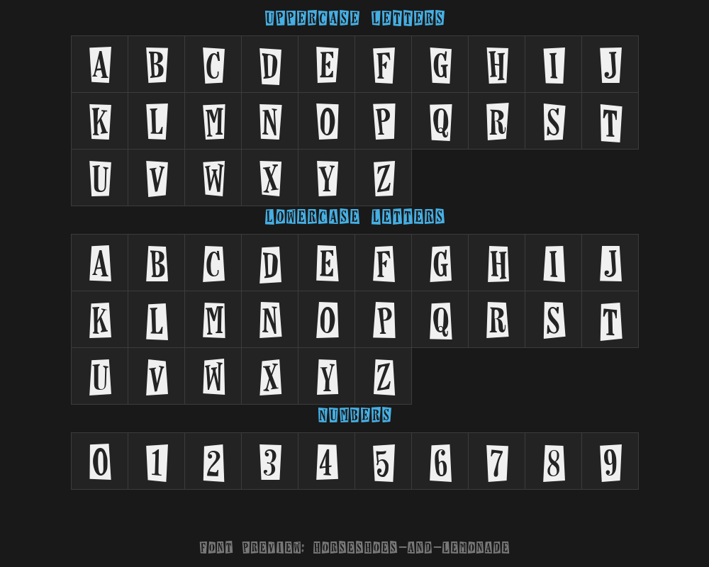 Overview:horseshoes-and-lemonadeFont