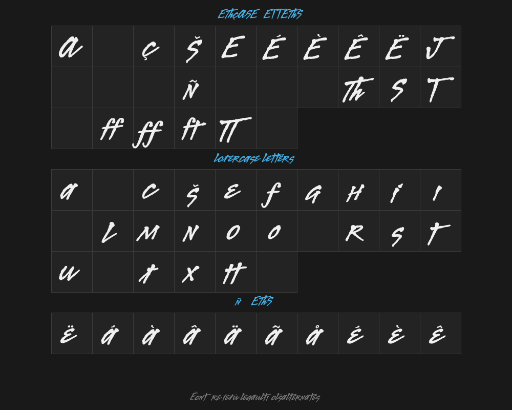 legault-boldalternates is a font file with a size of 0.03 MB. The full font name is Legault-BoldAlternates, 001.000 version. It contains 75 characters, supports 8 Chinese characters. The copyright belongs to Legault Alternates. legault-boldalternates font is available for free download, but commercial use requires confirmation on the Legault Alternates official website whether it's free for commercial use.
