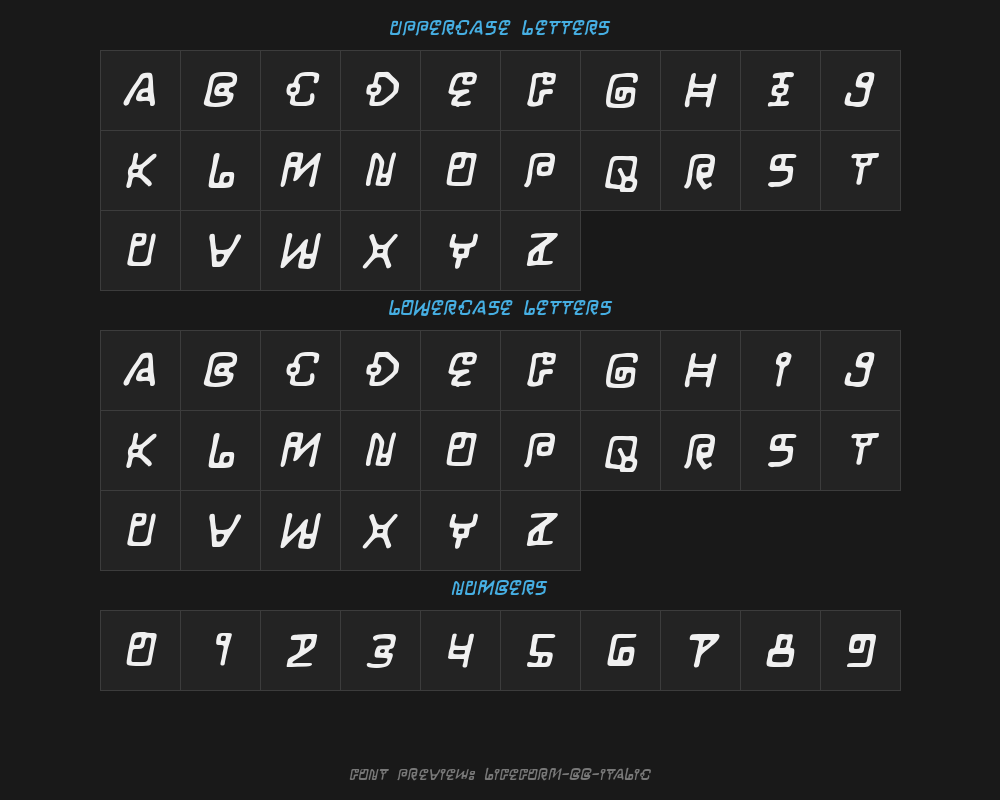 | AboutFont | NatePiekos.Blambot.com LifeForm BB Italic 2009 |