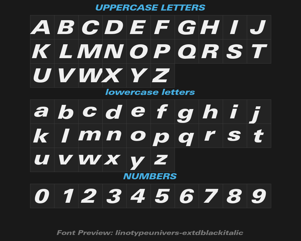 | AboutFont | LinotypeUnivers-ExtdBlackItalic 1178532837 |