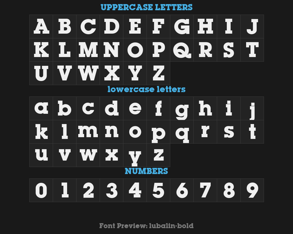 lubalin-bold is a font file with a size of 0.04 MB. The full font name is Lubalin Bold, Altsys Fontographer 3.5 11 16 92 version. It contains 207 characters, supports 8 Chinese characters. The copyright belongs to Lubalin. lubalin-bold font is available for free download, but commercial use requires confirmation on the Lubalin official website whether it's free for commercial use.