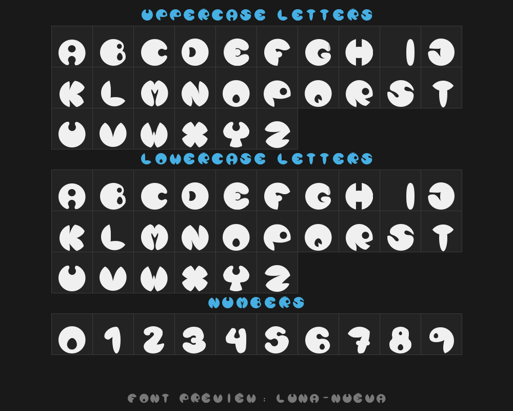 luna-nueva is a font file with a size of 0.02 MB. The full font name is Luna Nueva, Version 001.000 version. It contains 72 characters, supports 8 Chinese characters. The copyright belongs to Luna Nueva. luna-nueva font is available for free download, but commercial use requires confirmation on the Luna Nueva official website whether it's free for commercial use.