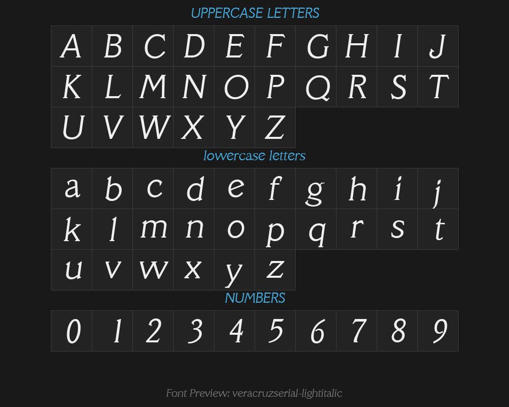 veracruzserial-lightitalicFont details