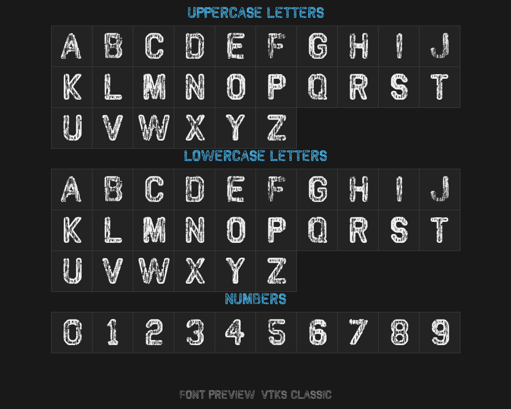 vtks-classic is a font file with a size of 0.29 MB. The full font name is VTKS CLASSIC, Version 1.00 February 19, 2010, initial release version. It contains 656 characters, supports 8 Chinese characters. The copyright belongs to VTKS CLASSIC. vtks-classic font is available for free download, but commercial use requires confirmation on the VTKS CLASSIC official website whether it's free for commercial use.