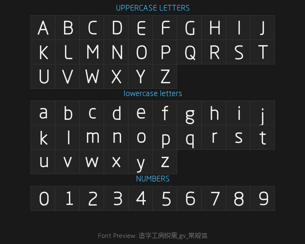 Overview:Zaozi Gongfang Yuehei _g0v1_ Regular typeFont